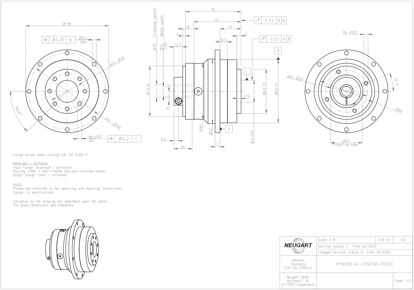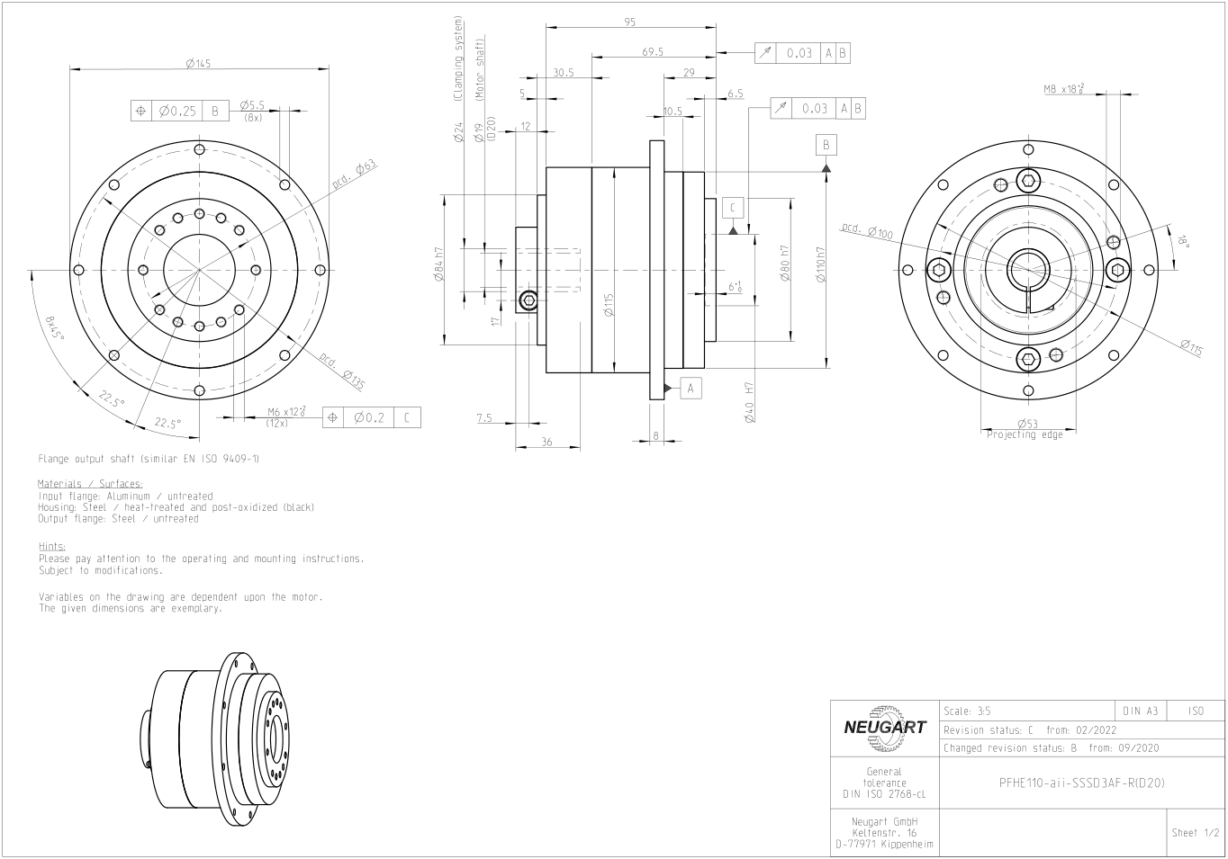 | Centering diameter output flange | mm | 64 | 90 | 110 | |